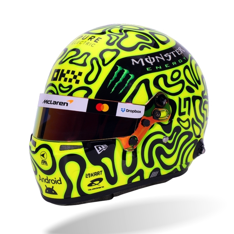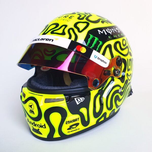 BELL este furnizorul de căști de concurs atât pentru Lando, cât și pentru Charles Leclerc și Lewis Hamilton.