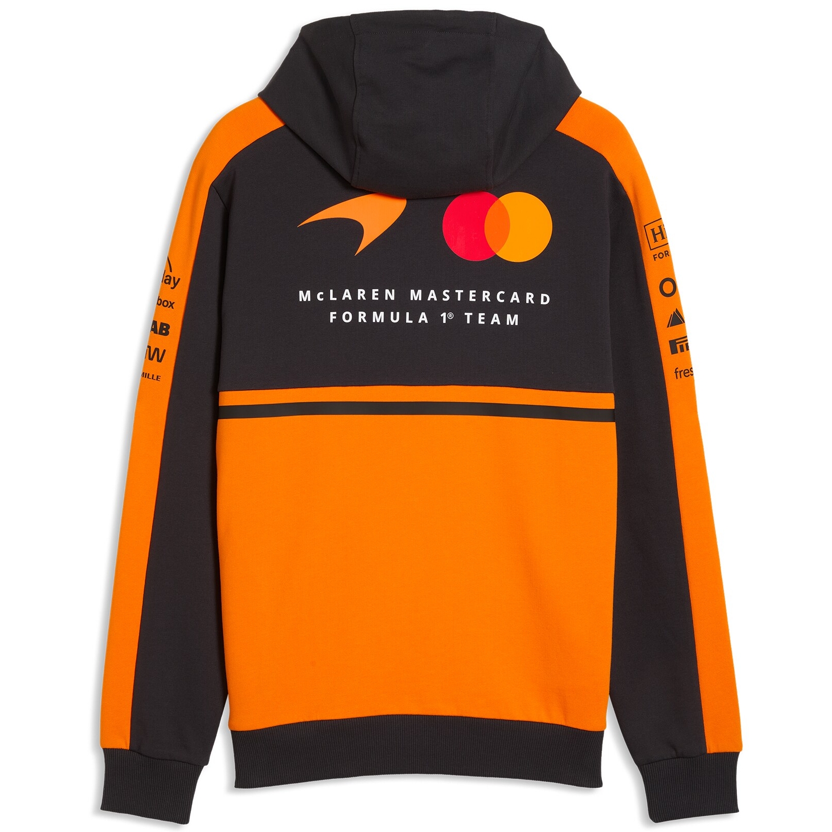 Logo-urile McLaren Mastercard Formula 1™, și ale partenerilor 2026, pe față, umeri, mâneci și spate.