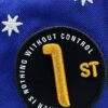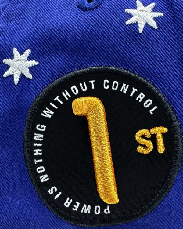 Broderie specifică cursei „1st”, „numele orașului gazdă” și „datele cursei” pe laterale
