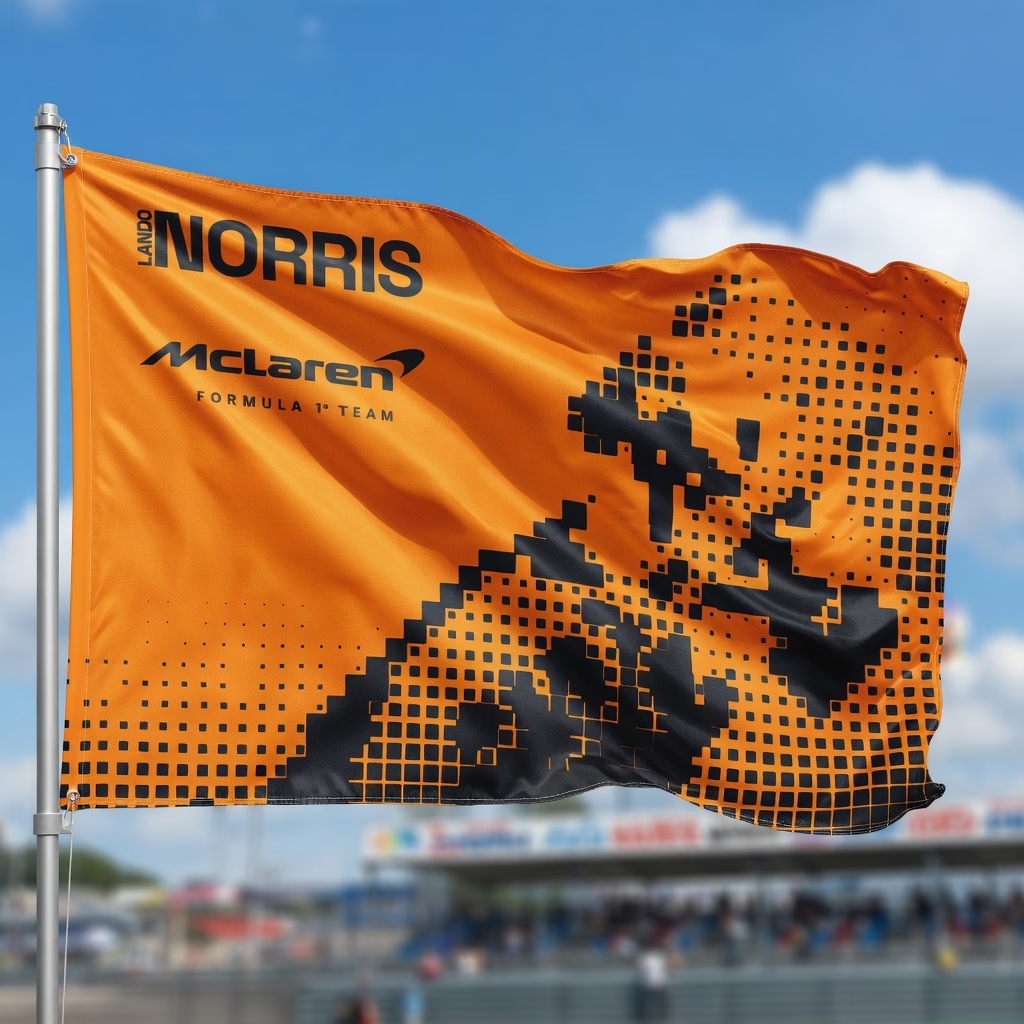 Steagul McLaren Norris este modalitatea perfectă de a-ți arăta sprijinul pe pistă, sau agățat de perete, acasă sau la job.