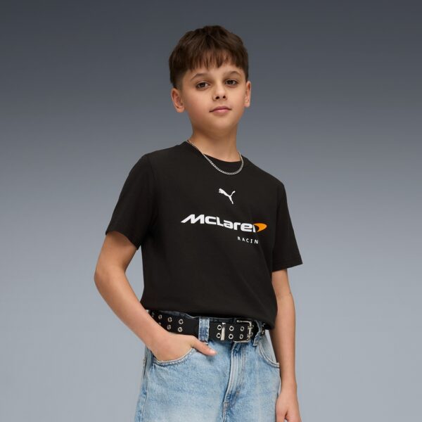 Arată-ți susținerea pentru McLaren Racing cu acest tricou vibrant pentru copii cu logo mare, conceput pentru tinerii suporteri și cu inscripția îndrăzneață a echipei pe piept și spate. Creat pentru confort și stil, acest tricou cu croială standard este perfect pentru purtarea zilnică și pentru a-ți exprima pasiunea pentru curse. Colecție licențiată oficial.
